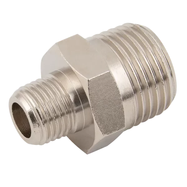BSP Taper Male x BSP Taper Male, Brass Nickel Plated Adaptor, Unequal, Straight